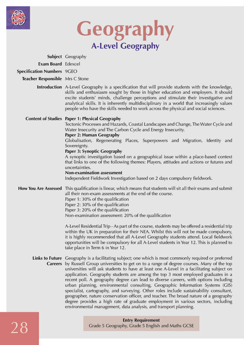 - to encourage our students to question our complex and dynamic world by navigating more contemporary themes in Geography such as Superpowers, Water Insecurity and Energy Issues.