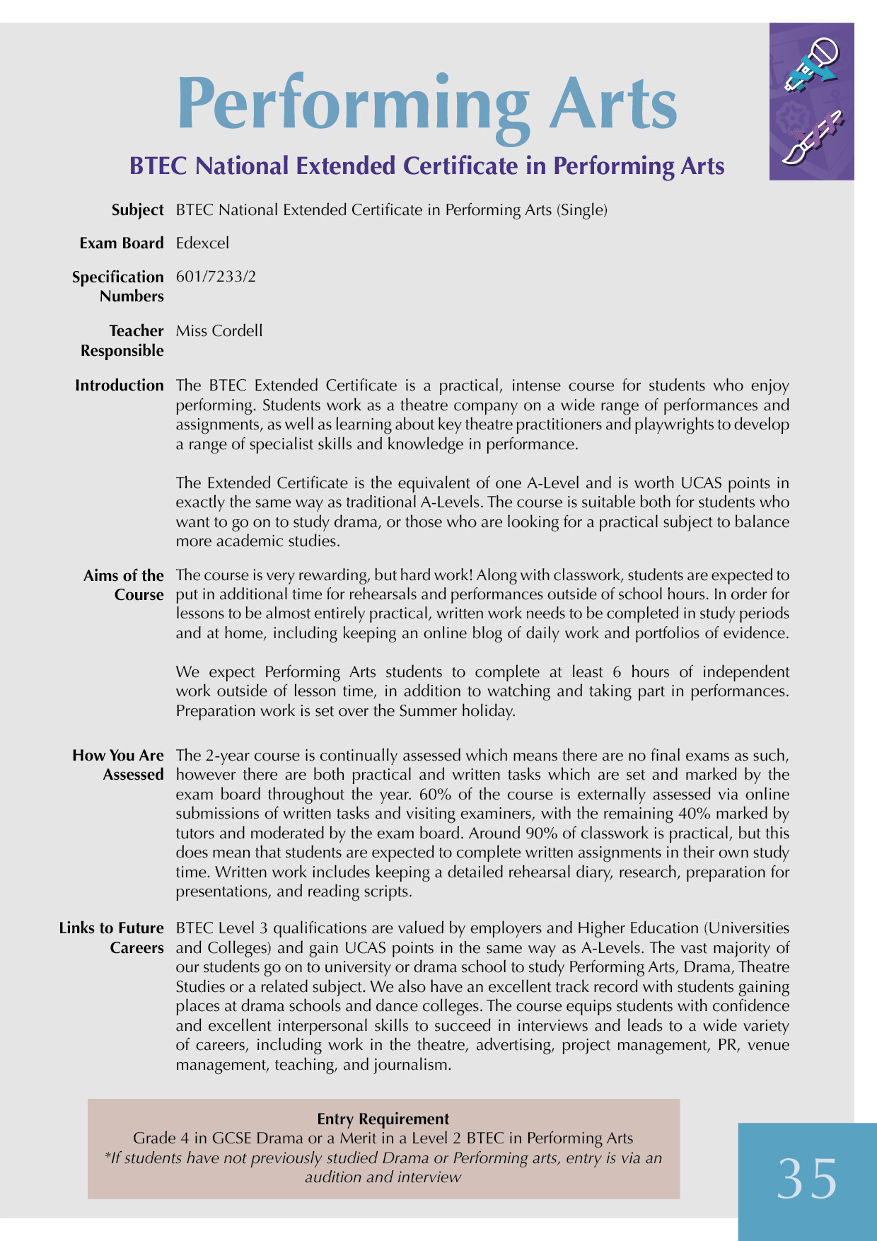 - to develop an appreciation of performance, both live and recorded, and the impact and influence this can have on our lives.